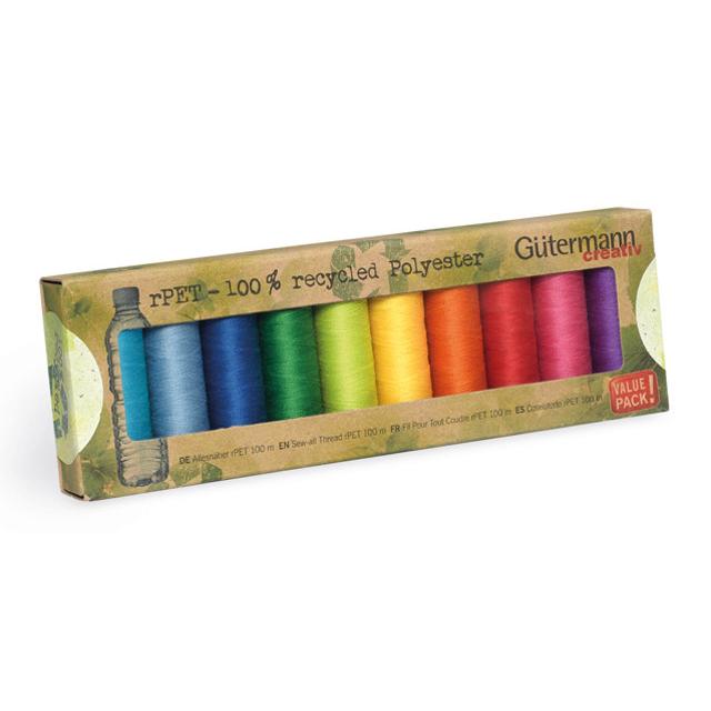 Gutermann rPet Recycled Polyester Thread 10 x 100m: Brights