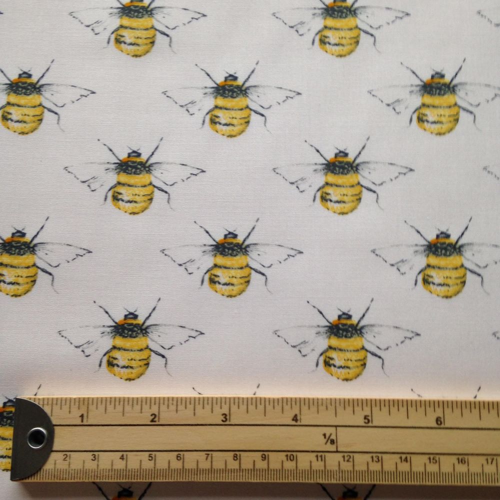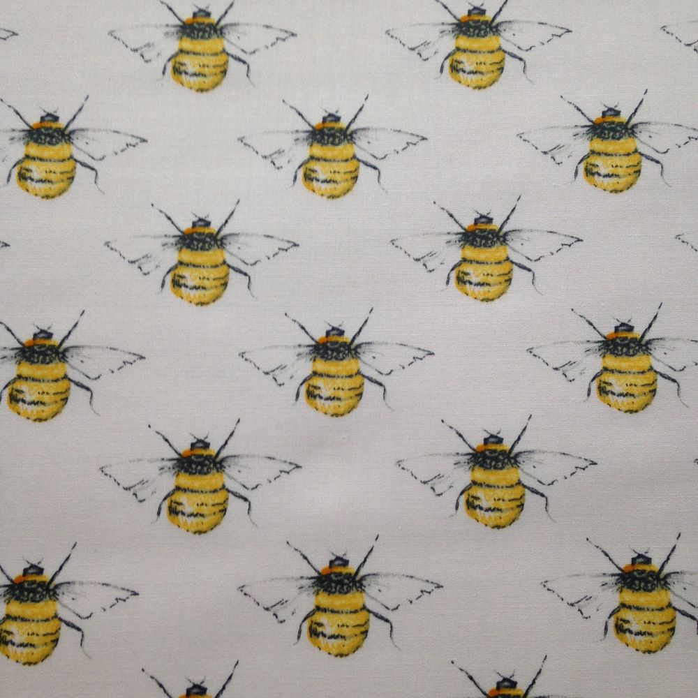 A beautiful ivory 100% cotton poplin bee fabric from Rose and Hubble, ideal for quilting, patchwork, dressmaking and craft projects.