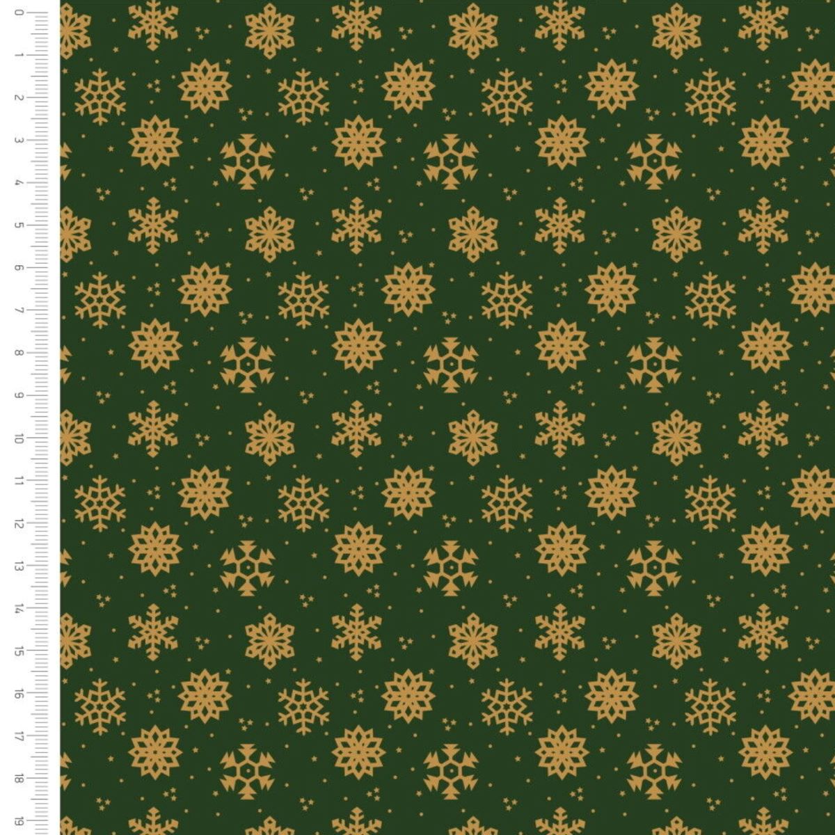 This beautiful Snowflake Green Metallic print from The Craft Cotton Company features a gold snowflake print on a green background. This design is also available on red. This is a craft quality 100% cotton fabric, ideal for quilting, patchwork, dressmaking and craft projects.